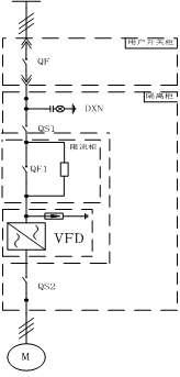 此方案為一拖一的典型方案,QS1、QS2為隔離開關(guān)。隔離柜作用:方便檢修時(shí)有明顯的斷點(diǎn),確保人身和設(shè)備的安全。